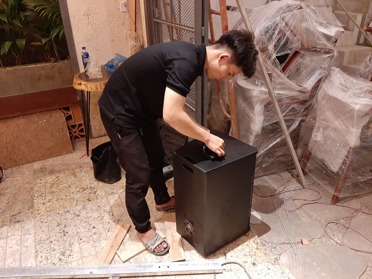 Kỹ Thuật Viên Âm Thanh Tiến Hành Gắn Pad Treo Loa